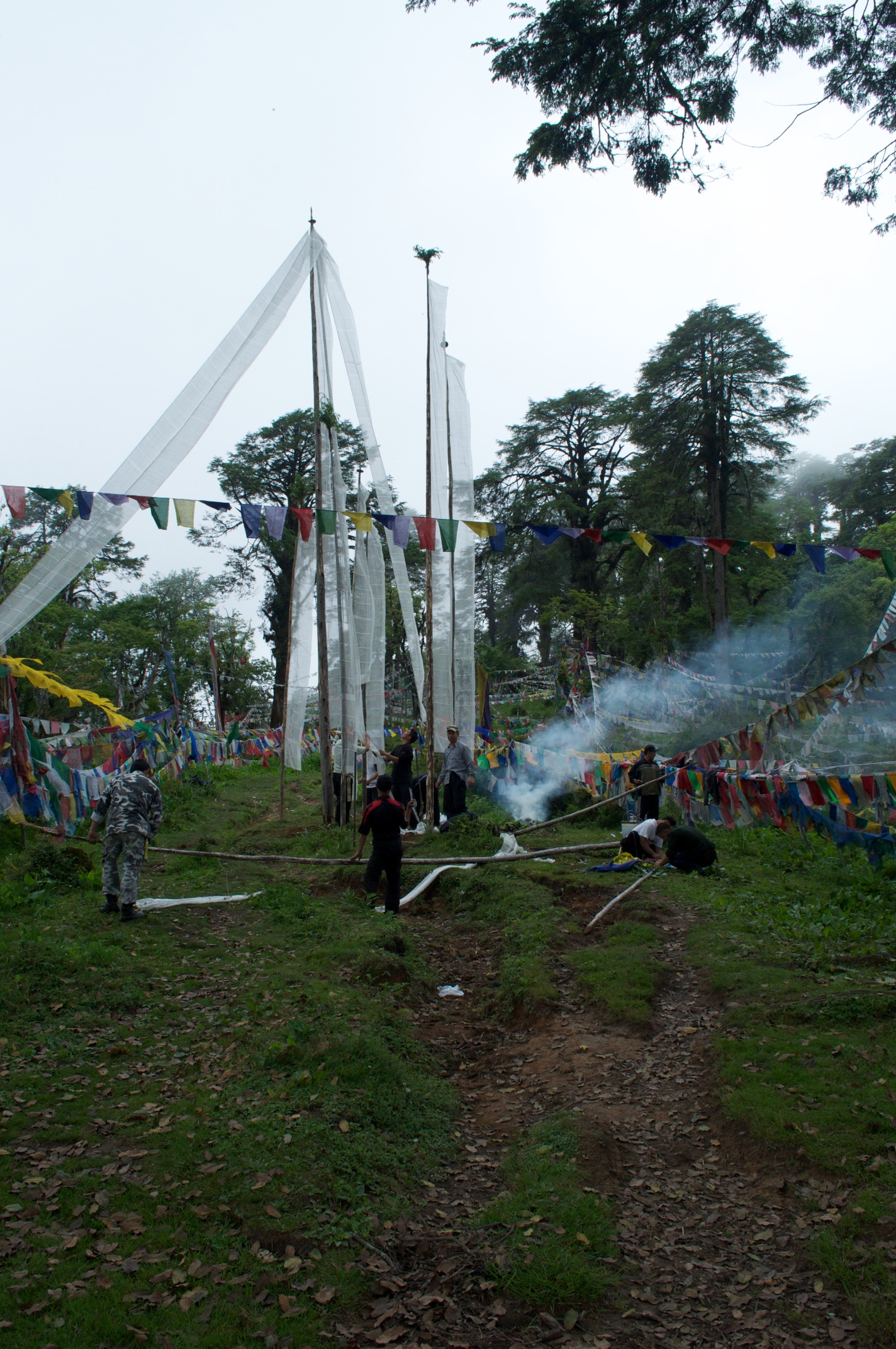 Our travels have taken us across the country and ow back to the west and the streets of Paro. As we traveled across the pass between Wangdue and Thimphu, we stopped and talked to a family raising prayer flags for a deceased relative. Families raise these flags in honor and memory of their passing and the flag poles, 15 to 20 feet tall, are markers of their life.