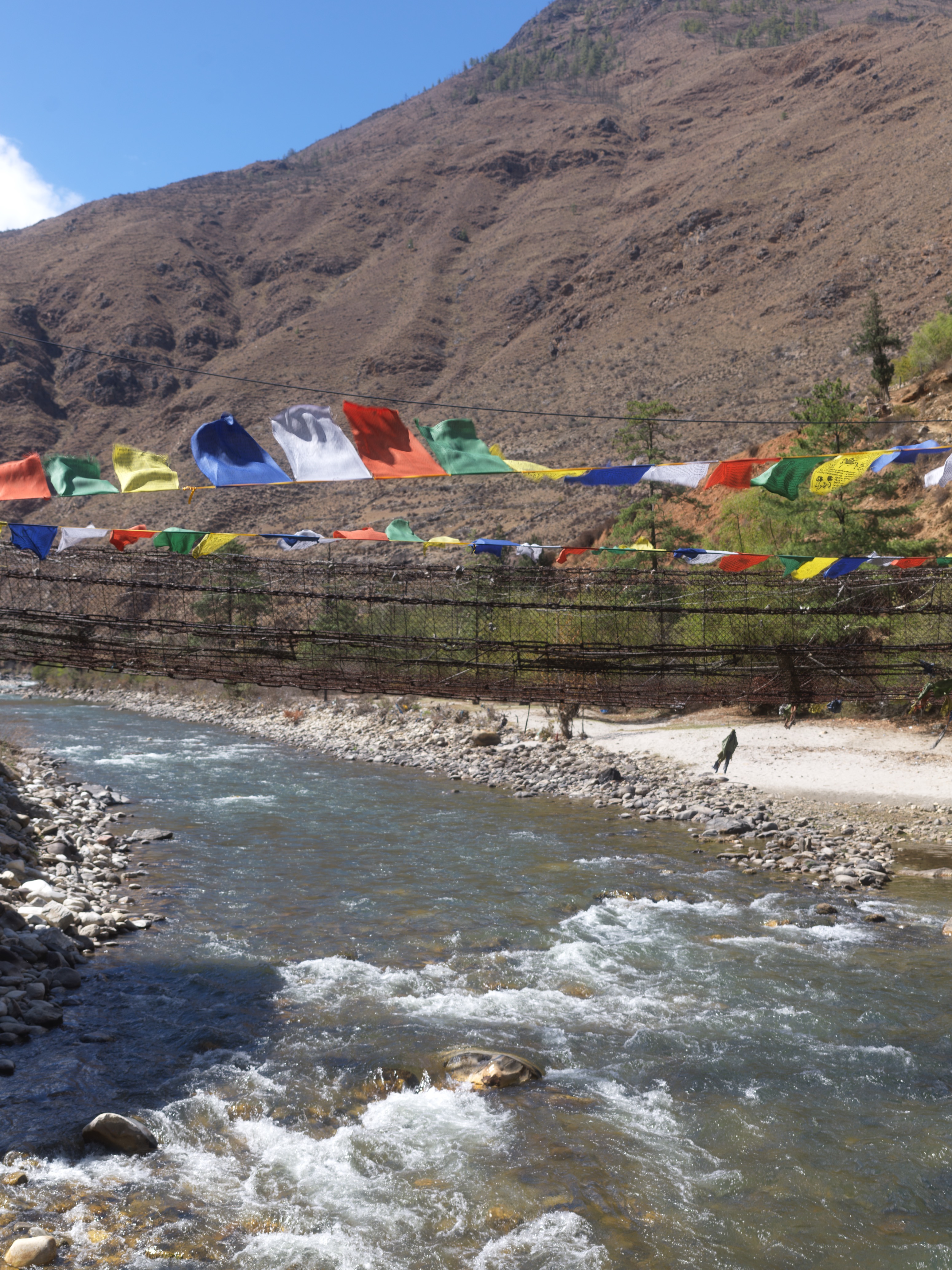 After Kyichu we ate lunch and made our way to Thimphu, the capital of Bhutan. On the way, we stopped for a hike at the Iron Bridge. Legend and history states that a Tibetan ironworker came to Bhutan and formed the iron links that made up the bridge in the 16th century. We walked around the area, headed up to the stupa on the hill.