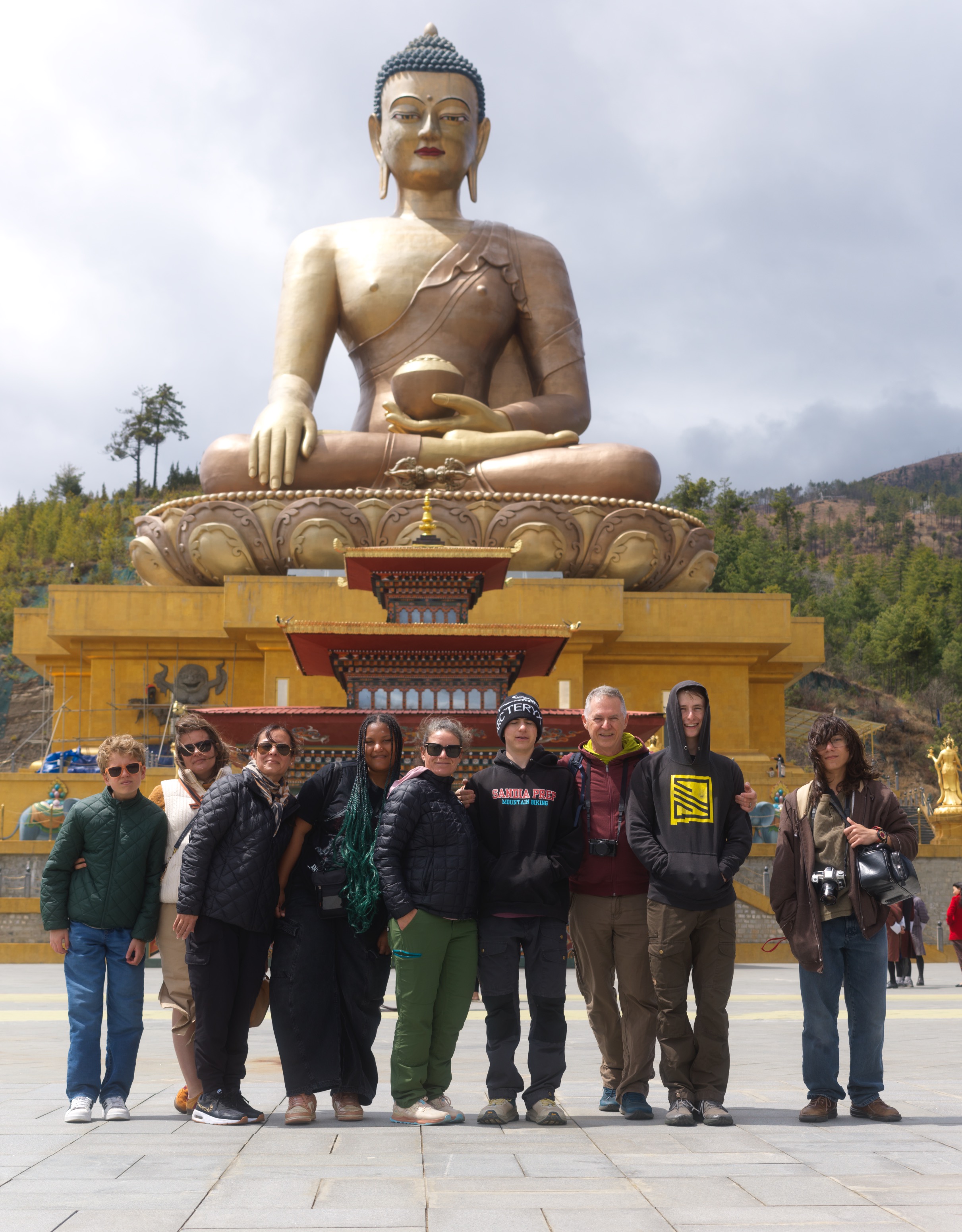 From the factory, we drove the steep hills to Dordenma Buddha temple complex and toured the shrine rooms and grounds. The project, begun in 2006 is nearing completion, and the site is massive. The intricate craftwork, painting, and statuary are remarkable (I use this work A LOT in Bhutan), and we heard from Namgay and Tenzin about the project and its importance to Bhutan.