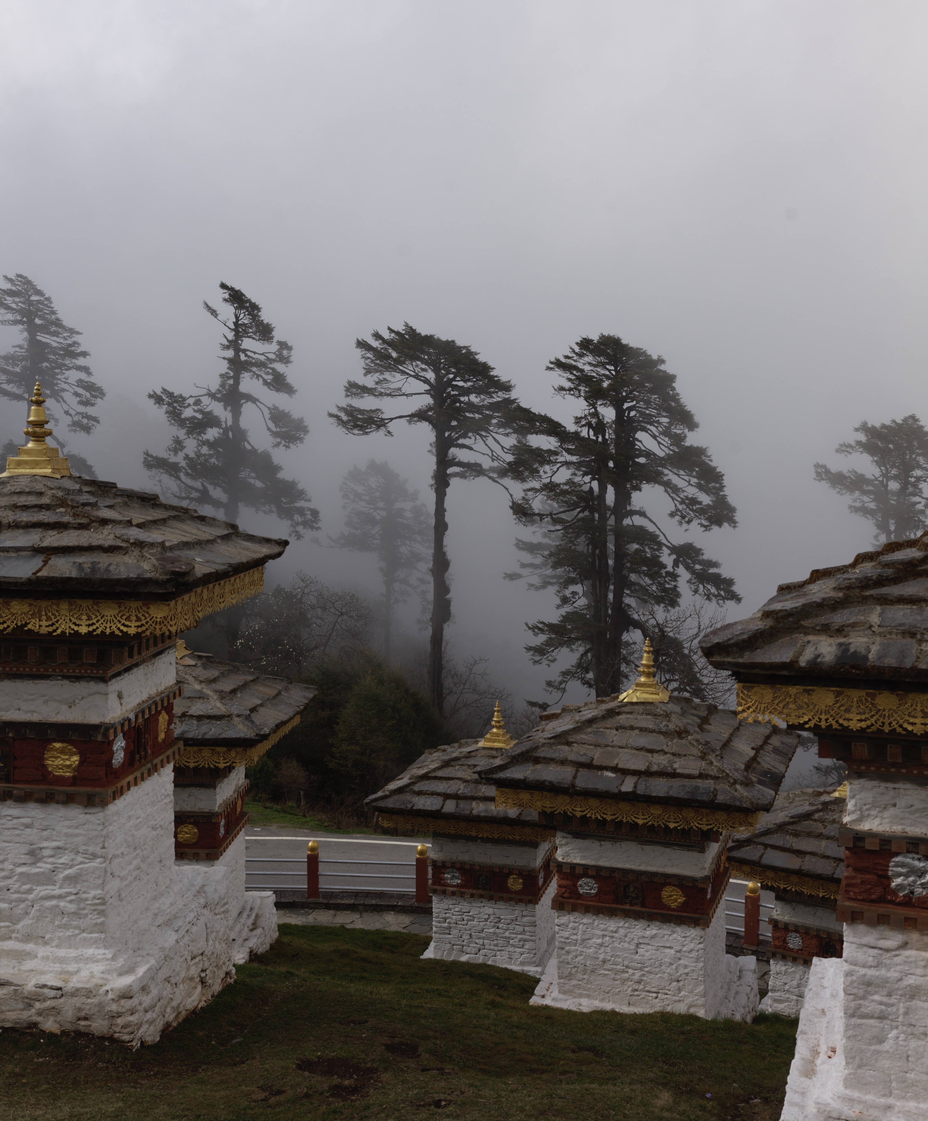 We had a bite ot eat (food on this trip has been exceptional), and drove the winding roads to Punakha with a stop at Dochu-la Pass. The Pass is the site of Chortens that honor important individuals in Bhutan, their ashes interred in the structures.