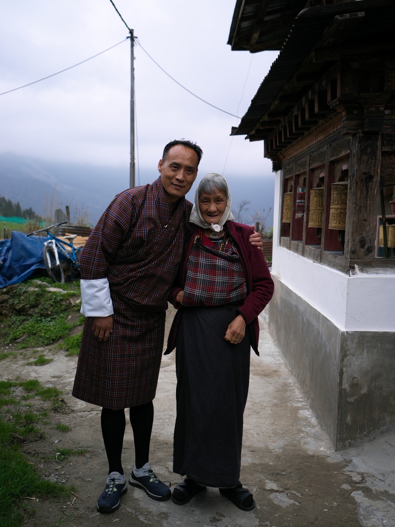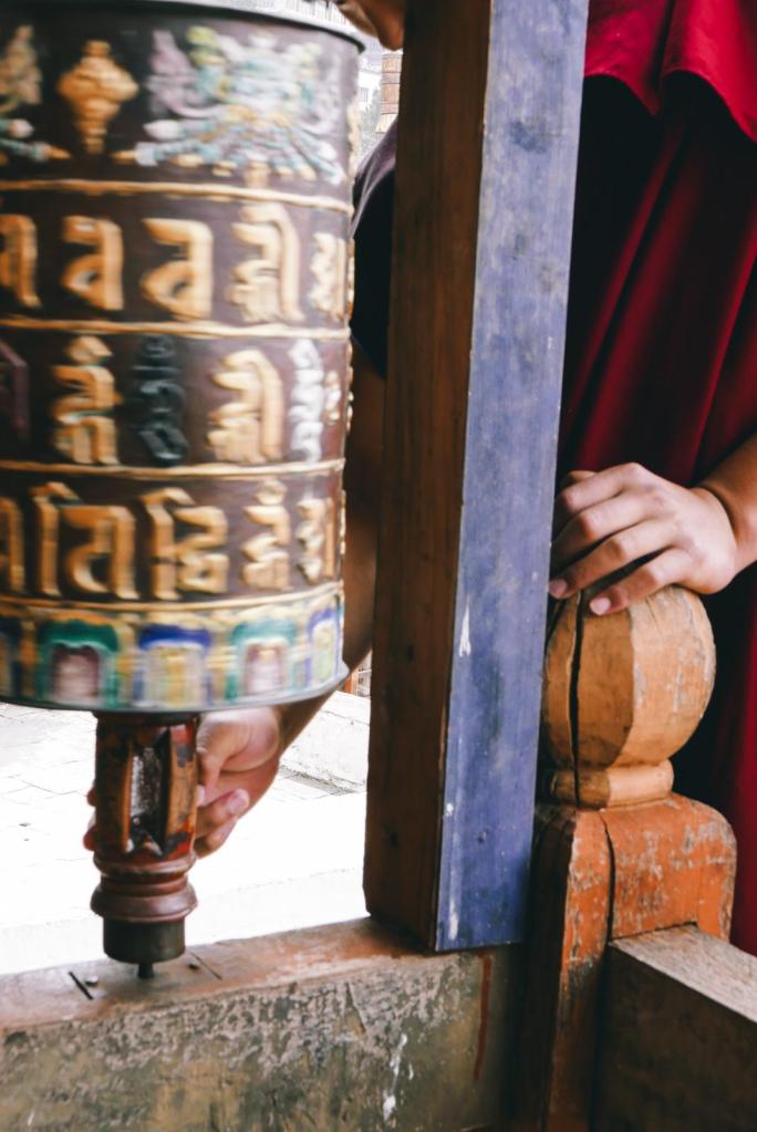 Brian: Thus far I am most struck and enjoying the continuous array of prayer flags throughout the environment. Strung on bridges; wrapped around stupas; planted high on hillsides or ridge lines on long vertical poles; yellow ones lining the winding road ascending the mountain to the golden buddha; tall white funereal ones planted in groups high on hillsides commemorating a relative. They are literally everywhere and bring so much color and joy to traveling through this beautiful landscape.