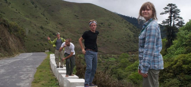 Bhutan has only a few paved roads across the country between Thimphu and any place to the east. The main road is a sometimes one lane, sometimes two lane thoroughfare that includes passenger vehicles, cargo trucks, construction vehicles and farm equipment. Travel on this road is exciting and on virtually every turn, a fascinating dance between truck and car, bus and dump truck.
