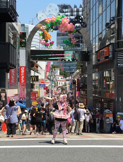 The tea spot is in the midst of the mania of the Harajuku shopping district, Takeshita street. The hawk wares of questionable quality as well as any kind of hip, trendy thing going on in Tokyo at the time. Seriously, here is the center of youth fashion (maybe for the world) and you will find people attired in a wide range of clothing and styles….the main word I would use to describe the clothing and area is “cute”. Little animated characters are everywhere; anime and manga characters are represented as well as small, cute cartoon animals. The young women are often seen dressed as dolls all in lace. Some are dressed in a kind of goth style with black and white accessories.